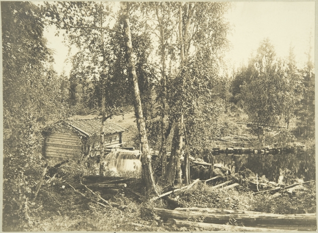 Vesimylly patorakennelmineen Sotkamon Juuanjoessa