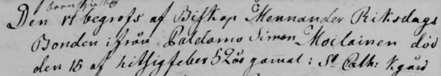 Simon Moilanen mainitaan myös muutamissa vanhoissa sanomalehdissä. Kauppalehden artikkelissa vuodelta 1927 on listattu vuonna 1768 (todellakin vasta 3 vuotta kuoleman jälkeen) tehdyn Simon Moilasen perukirjoituksen sisältöä ja omaisuutta, joka on tuohon aikaan ollut varsin huomattava. Lista on pitkä, en kirjoita sitä kokonaan mutta sieltä löytyy mm. neljä kuparista kattilaa, hopeapikari, muita messinkisiä tai kuparisia astioita tai esineitä, pyssyjä, kirveitä, hylkeennahkapäällysteinen kofferttiarkku, 100-sylinen nuotta, 68 harvasilmäistä verkkoa, 9 tiheää verkkoa, 44 rysää ja 6 venettä. On mustia samettisia myssyjä, damastilakki, juovikkainen vilttihattu ja jopa pari punaisia kenkiä. On röijyjä, vilttejä ja kauhtanoita. Eläimiäkin oli: 2 hevosta, 14 lehmää, 2 hiehoa, 2 härkää ja viisi vasikkaa. Mielenkiintoinen on myös lista kirjoista, joita Simonilta oli jäänyt: raamattu, Wegeliuksen 2-osainen suomalainen postilla, 4 suomalaista virsikirjaa, Arndtin ”Paratiisin yrttitarha”, Forsmanin ”Kärleksmåltid” ja suomalainen lakikirja. Käteistä rahaa 552 taalaria ja 30 killinkiä. Varmoja saatavia 2 689 taalaria, epävarmoja saatavia 2 881 taalaria ja 16 killinkiä. Epävarmoista saatavista suurin osa ”ryssiltä”. Moilaselta jääneet velat olivat 363 taalaria ”ryssille” eli rajakaupan jälkeisiä saatavia ja velkoja lienevät nämä venäläisten raha-asiat.