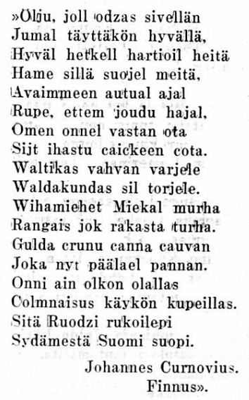 Kajaanin kaupungin perusti 6.3.1651 kreivi Per Brahe vapaaherrakuntansa keskukseksi. Brahe oli aikanaan Ruotsin suurin maaomistaja. Kuningatar Kristiina oli vuonna 1650 antanut Brahelle läänityksiksi Kajaanin vapaaherrakunnan, johon kuuluivat Kajaanin, Paltamon, Kuopion ja IIsalmen pitäjät. Läänityksien pinta-ala oli noin 48 000 km2 ja tuotto yli 10 000 riikintaaleria. Läänitysten omistajahan sai kerätä hallinnoimansa alueen verot. Vuonna 1652 Per Brahe osti lisäksi Ruotsin kruunulta rälssitilakseen suuren osan Saloisten pitäjää ja Henrik Cronstjernalta Käkisalmen läänistä Pielisen pogostan. Niinpä Brahen omistuksessa oli käytännössä suurin osa koko itäisestä Suomesta. Kun Kajaanin kaupunki perustettiin, ei sillä alkuun ollut virallista hallintoa eikä oikeutta. Hallinnollisia ja oikeudellisia asioita Kaupungissa hoitivat silloinen Kajaanin läänin tuomari ja Kajaanin linnan päällikkö (Johannes Curnovius kihlakunnan tuomarina ja Zacharias Palmbaum linnan hopmannina). Vasta vuonna 1659 Per Brahe päätti, että kaupunki tarvitsee oman päällikkönsä eli pormestarin ja ensimmäiseksi pormestariksi Brahe nimitti silloisen kihlakunnan tuomarin Johannes Curnoviuksen. Curnovius oli syntynyt Porissa kaupungin pormestarin poikana noin 1620, tarkkaa syntymäaikaa ei tiedetä mutta hän oli päässyt ylioppilaaksi vuonna 1640, joten tuo arvio ei heittäne kovinkaan paljon. Sukunimi Curnovius oletetaan syntyneen Johanneksen isän omistaman Kurnelan talon mukaan. Johannes opiskeli Turun yliopistossa, suoritti tuomarin tutkinnon ja pääsi auskultantiksi Turun hovioikeuteen. Kun Brahe sai Kajaanin läänitykset itselleen, määräsi hän Curnoviuksen sinne kihlakunnan tuomariksi. Tuomarin pestiä Curnovius hoiti pormestarin työn ohella vuoteen 1661. Curnovius meni Kajaaniin saavuttuaan naimisiin Kajaanin vapaaherrakunnan voudin Anders Erikinpojan tyttären Felicia Cajanuksen kanssa. Anders Erikinpojan alkuperästä on kiistelty vuosikymmeniä, todennäköisin vaihtoehto lienee se, että hän oli kotoisin Kirkkonummen Korkkulan talosta, eikä siis Gyllenhjarta, kuten kovin monet ovat häntä nimittäneet. Curnovius sai Felician kanssa ainakin kuusi lasta. Curnovius ei ollut lainkaan innokas ottamaan pormestarin virkaa vastaan mutta vaikka hän pyysi vapautusta, sitä ei hänelle myönnetty. Innottomuudestaan huolimatta hän hoiti virkansa moitteettomasti ja sai aikanaan paljon parannuksia aikaan. Curnovius oli siis oppinut mies, joka yliopistoaikanaan piti kokonaisen esitelmän, joka myös painettiin, latinankielellä. Vähemmän tunnettu asia on se, että hän kirjoitti myös runoja. Ennen Kajaaniin tuloaan hän oli kirjoittanut mm. suomenkielisen onnittelurunon kuningatar Kristiinan kruunajaisiin (tämän tekstin vasemmalla puolella nähtävillä). Hän myös kirjoitti teoksen Ruotsin valtakunnan laista. Tämän teoksen Per Brahe aikoi painattaa omalla kustannuksellaan mutta hänen Wisingiin tekemänsä kirjapaino ei ehtinyt valmiiksi ennen kuin Curnovius vuonna 1665 kuoli. Kurnelan talon Curnovius-suku aateloitiin myöhemmin nimellä Adlerström.